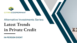 Please join us for the latest panel and networking event at Citrin Cooperman’s “Alternative Investments Series: Latest Trends in Private Credit.” Learn more and register…